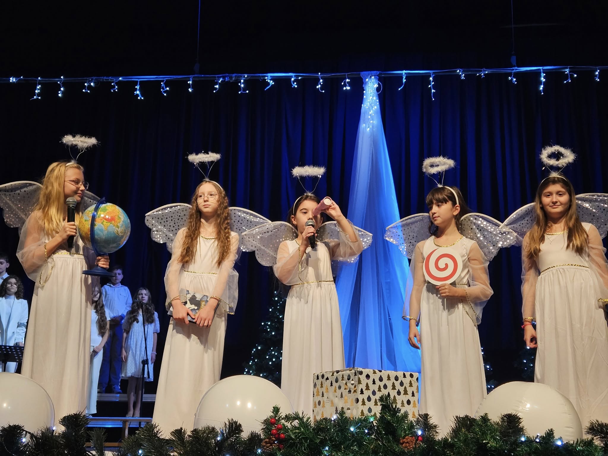 Gdy stanęli na scenie, czas zwolnił. Pojawiło się skupienie, lekkie drżenie głosu, spojrzenia szukające rodziców na widowni. Każdy gest miał znaczenie, każde słowo było „tu i teraz”.